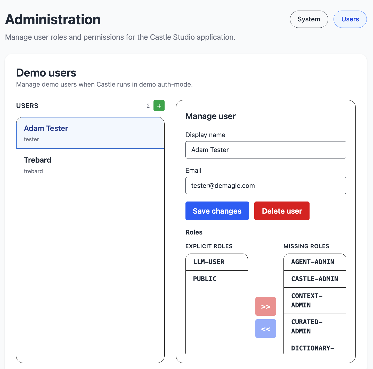 Castle uses a role system similar to Snowflake, where you can limit tool and data access using role assignments. You can map external roles, e.g. from OAuth 2.0, to Castle roles.