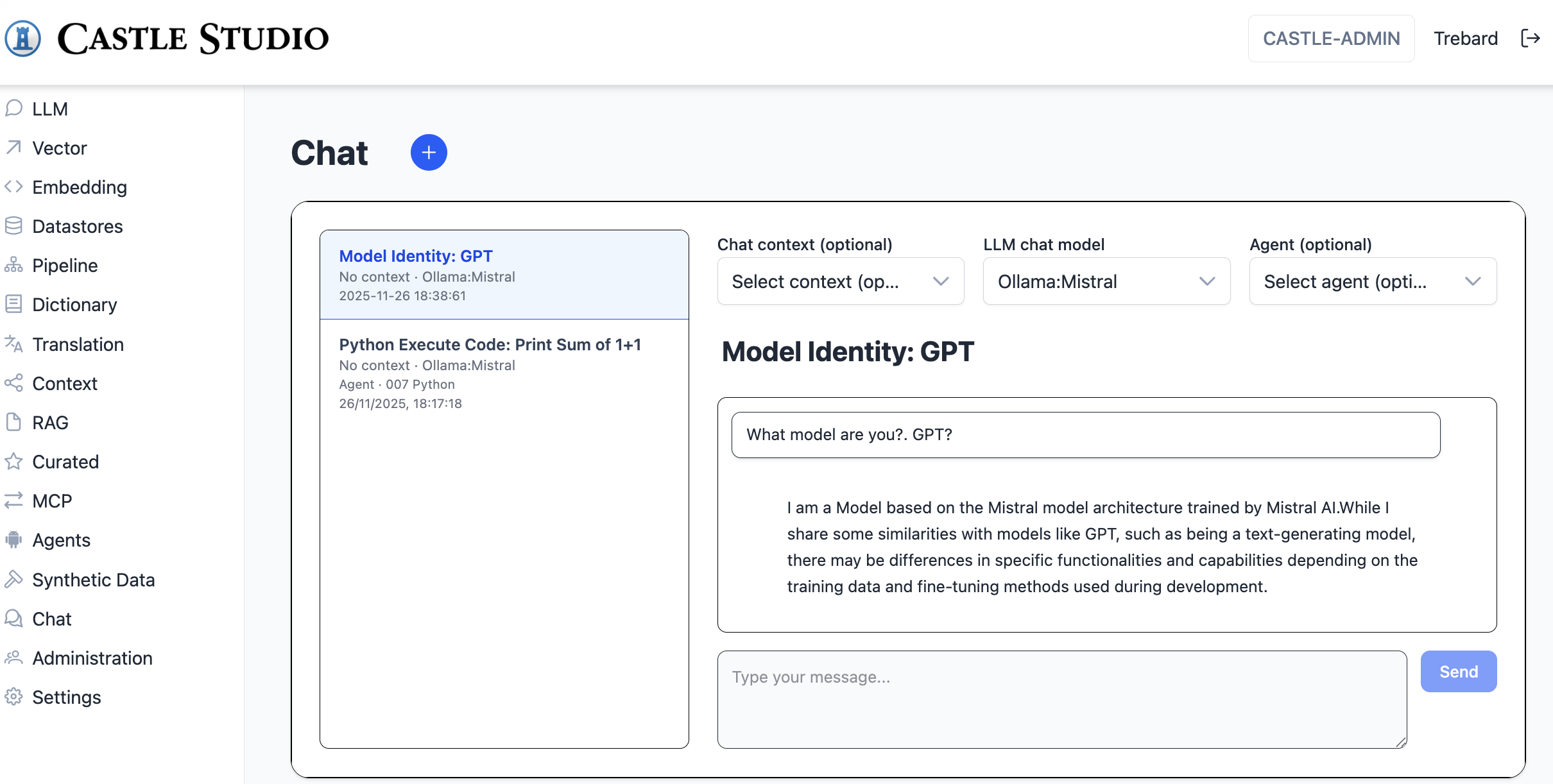 It is implemented with a Spring AI backend, called Castle Engine, and a Vue frontend, called Castle Studio.