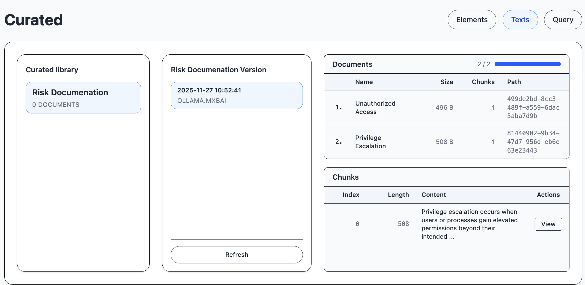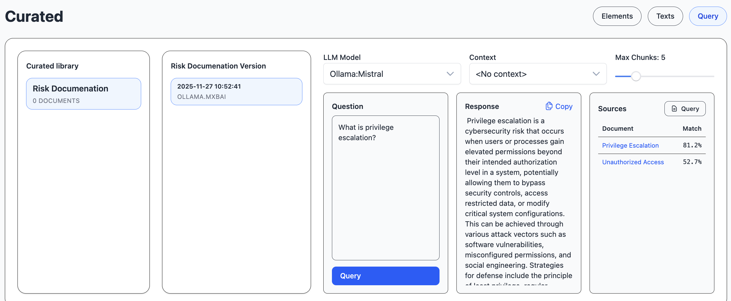 The curated module handles curated text and images to be used in standard documents. It uses RAG structure to encode and query the text, although the text can also be used in documents without modification.