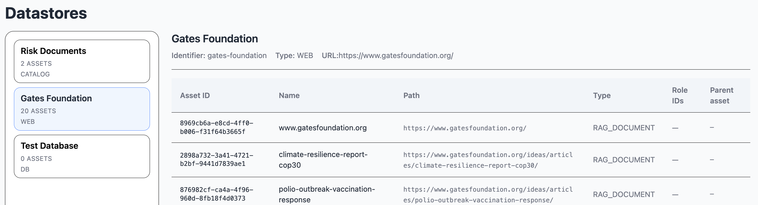 An asset is a document in a datastore. It may be a file, a database table or a webpage.