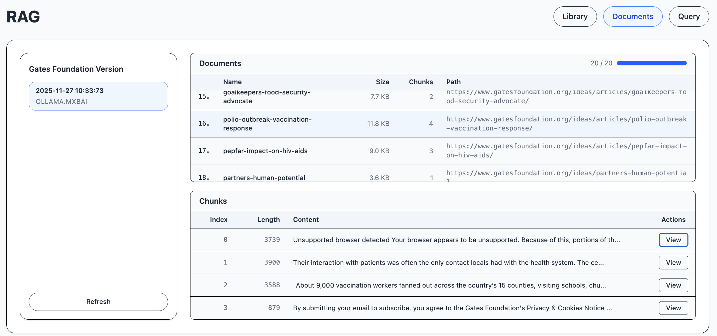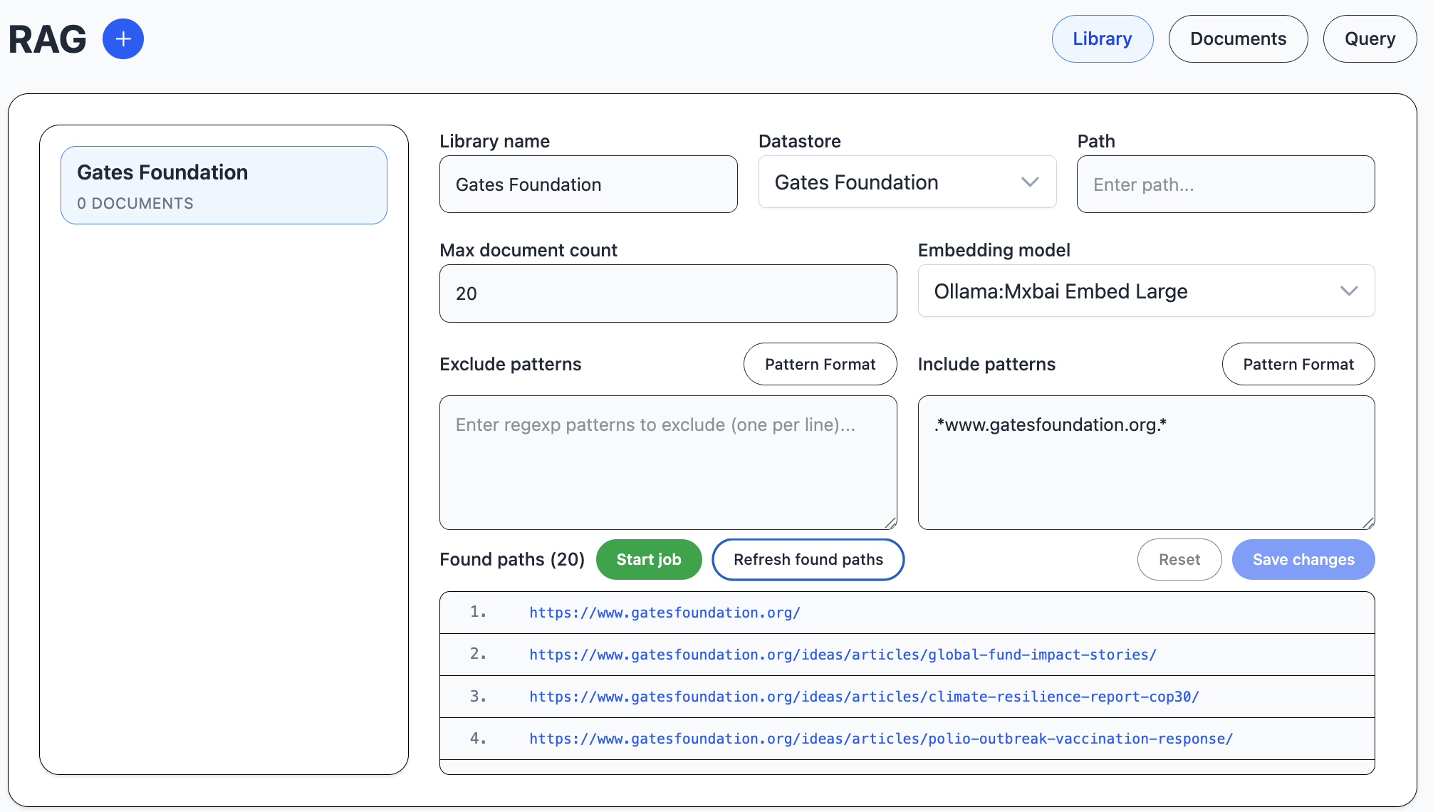 Rag documents are organized into libraries. Since all documents are encoded in the same vector database table, you can use multiple libraries in the same vector search.