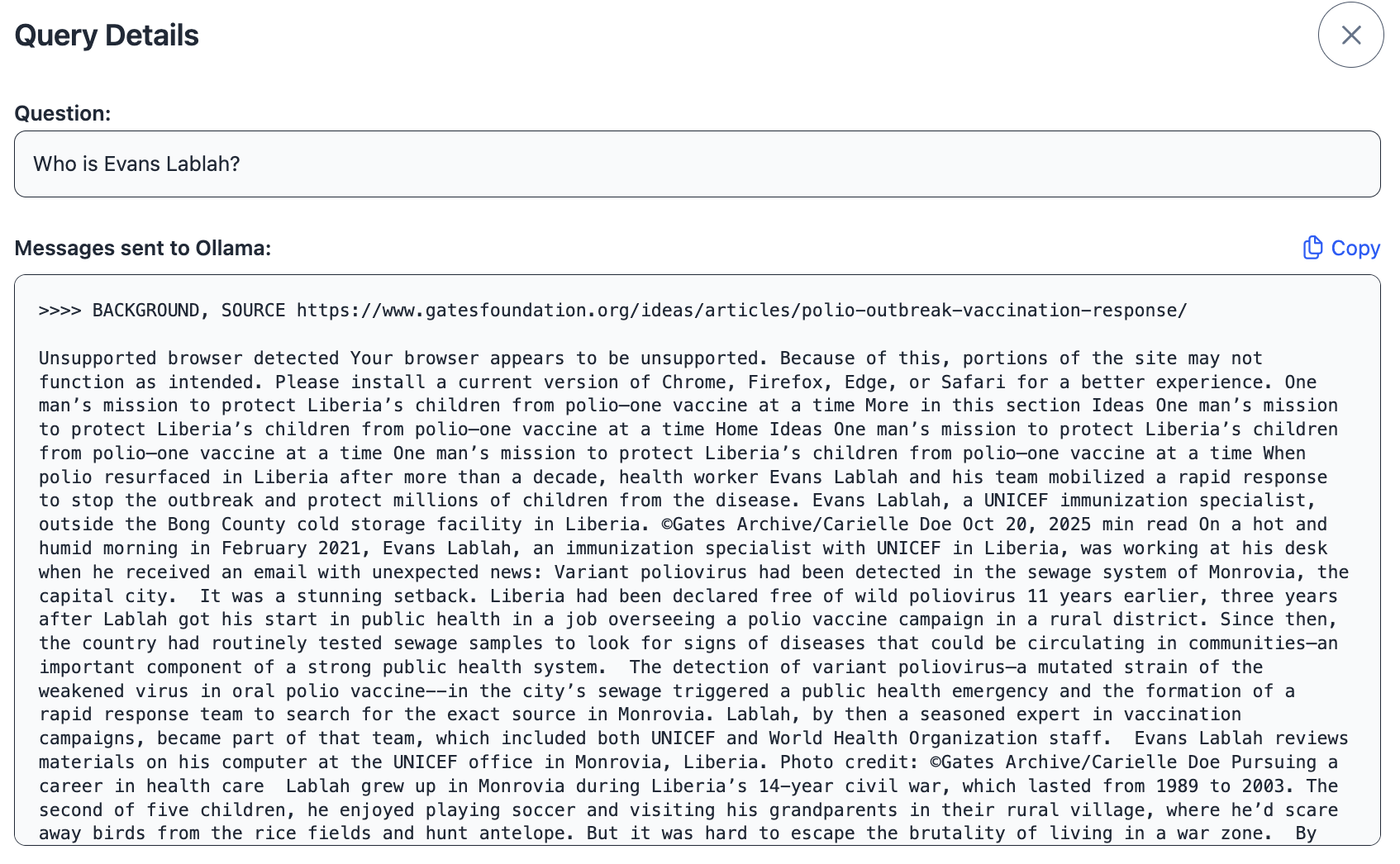 The rag module handles RAG, retrieval augmented generation. RAG is a way to find local information that resembles a question, and use a llm to summarize or search for an exact result based on the local information.