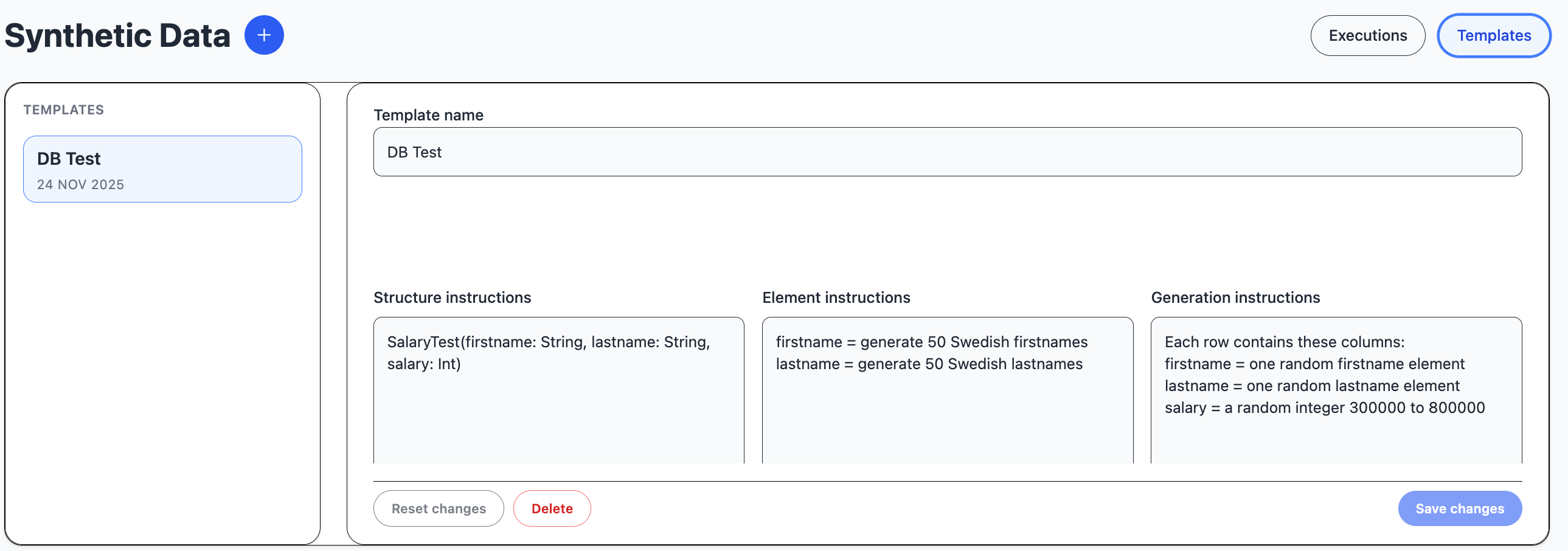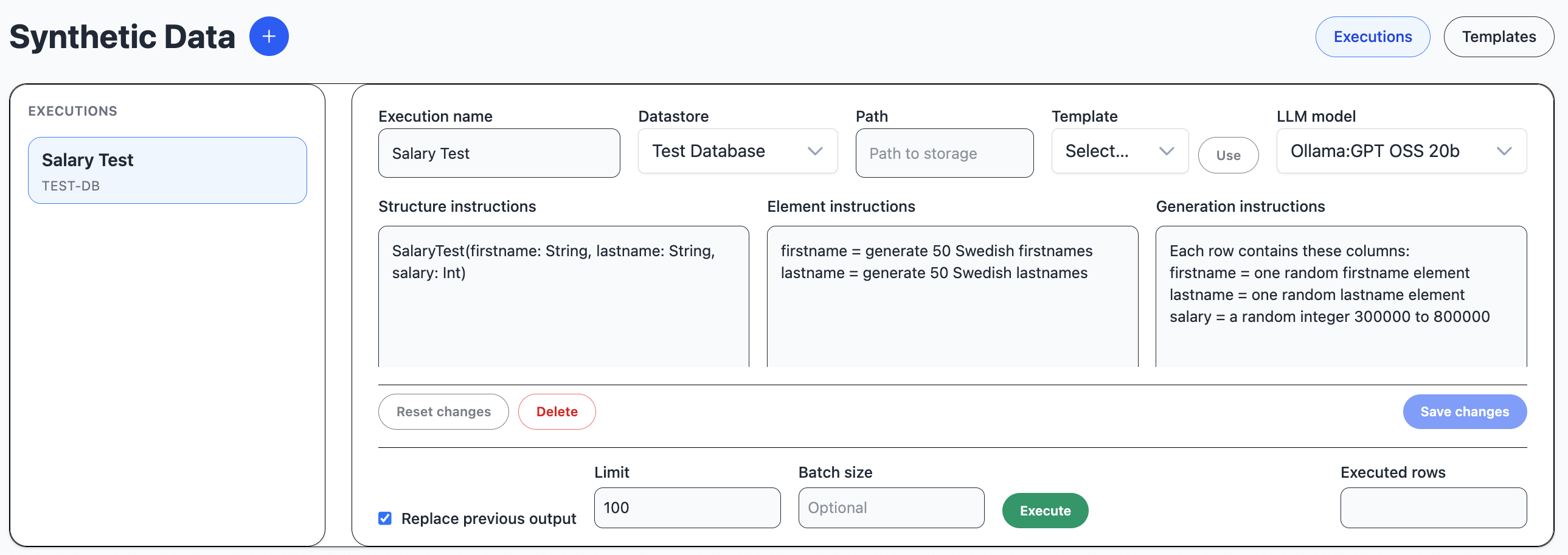 The datastores are defined in the application properties, to avoid credential handling in the frontend.